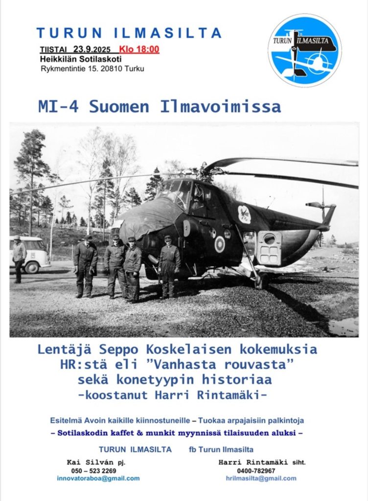 Esitelmä Mi-4 Suomen ilmavoimissa tiistaina 23.9 klo 18.00 Heikkilän sotilaskoti